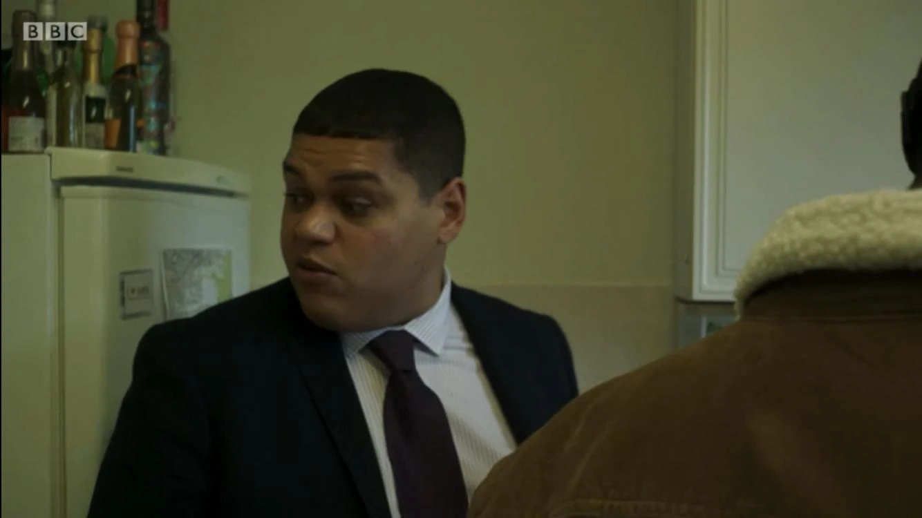 Dave is first seen in Who Do You Think You Are?, showing Alison and Mike around a flat which is small, depressing and doesn't have a garden but the downstairs flat had one they could look at.[1] He doesn't seem to put much effort into selling the flat and instead spends most of his time on his phone dealing with other clients. Dave knows that the Coopers hated the flat, he even reveals that he dislikes it, but is also fully aware they couldn't possibly afford a house as he's aware of their budget. He's helpful for the most part but displays a take it or leave it attitude. While viewing the flat Alison is contacted by a solicitor to inform her she'd inherited a house from Heather Button, this is presumably where he's informed his services would no longer be required.
