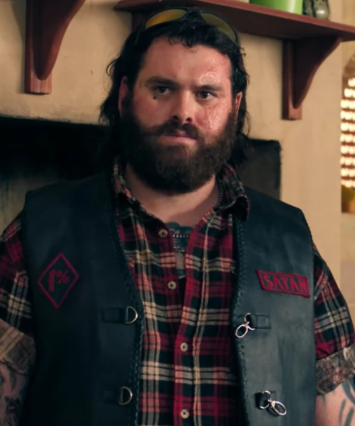 Satan is the largest and most imposing looking ghost at Ramshead Manner, with a rough voice to match, black mane and beard. His biker getup includes driving glasses, arm length tattoos, and a vest with his gang name and a drawing of a furious bulldog on the back. He has a black tear tattoo under his right eye, and the left side of his face is burned.