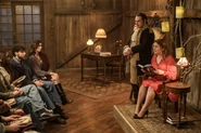 Seeing Elias, Sam tells Jay who he is while the latter says this is Brett, his new publicist. Sam repeats what she just said while the ghost revealed that Elias now has the ability to take on human form, and he told him this previously when he popped in a few weeks ago. Thorfinn notes they should have said something as Sam agrees angrily. Elias confirms to the confused Jay of his identity and that he used the alias Brett McAfee secure a contract from him which was actually Jay selling his soul to the devil. Jay bemoans this fact while Elias confirms to Sam when Jay dies, he is going to hell. The ghosts wonder if this was the evil that Patient has sensed earlier, noting she was right all along. Elias tells the ghosts he would secure a soul while telling Jay things are going to look good for the upcoming talk show, but Jay wants out of the contract but Elias refuses and tells him to make use of what little time he has left. Jay questions this and Elias states there are ways to speed up the process before a lamp nearly falls on Jay who dodges. Elias remarks that he thought he would get Jay on the first try but cuts his losses by stating he would see him soon.